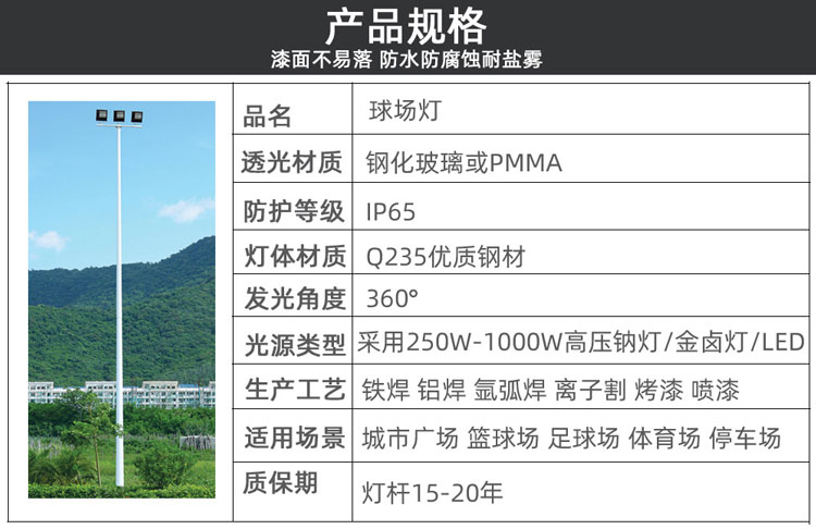 高(gāo)杆燈的(de)闆多(duō)采用(yòng)鋁合金(jīn)闆或不(bù)₹≈鏽鋼材料,耐腐蝕性較好(hǎo)。燈具的(de)透光(guān↔g)鏡由鋼化(huà)玻璃制(zhì)成。反射器(qì)通(tōng)常采用(yòng)•×₽經過電(diàn)化(huà)學抛光(guāng)處 '≠理(lǐ)的(de)純鋁闆制(zhì)成,具有(yǒu)優良的(de)反射率。燈頭設有(yǒu)≈δ¥角度調度座,可(kě)設定投射角度,保證合理(lǐ)的(de)照(zhào)明(míng£φ§)設備,不(bù)同場(chǎng)合照(zhào)明(míng)均勻。照(zhào) ✔明(míng)開(kāi)關有(yǒu)手動控制(zhì)和(hé)自(zì)動控制(<←zhì)兩種方式,對(duì)用(yòng)戶來(lái)說(shuō)非常方便和(hé)€₩→↑容易操作(zuò)。